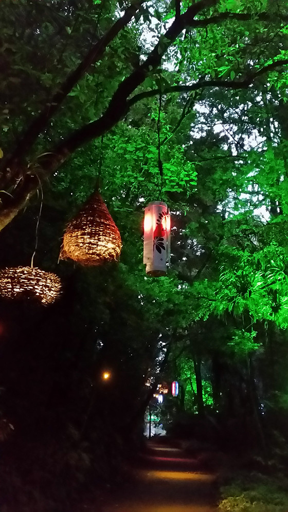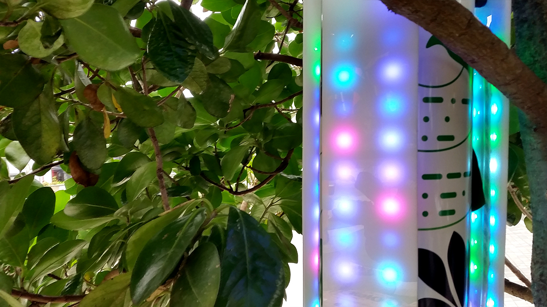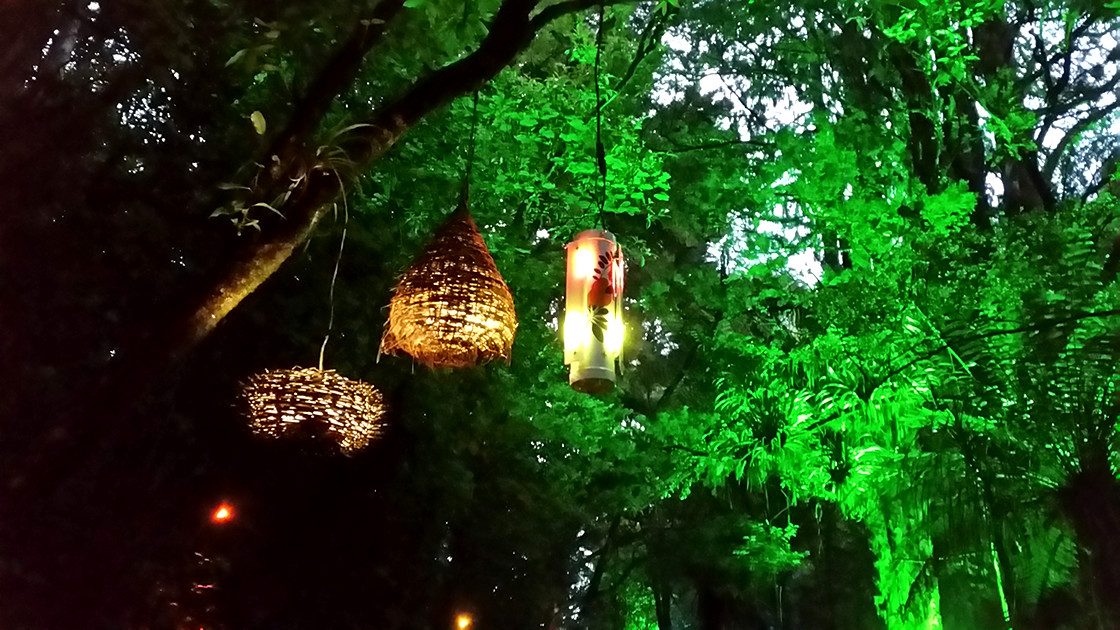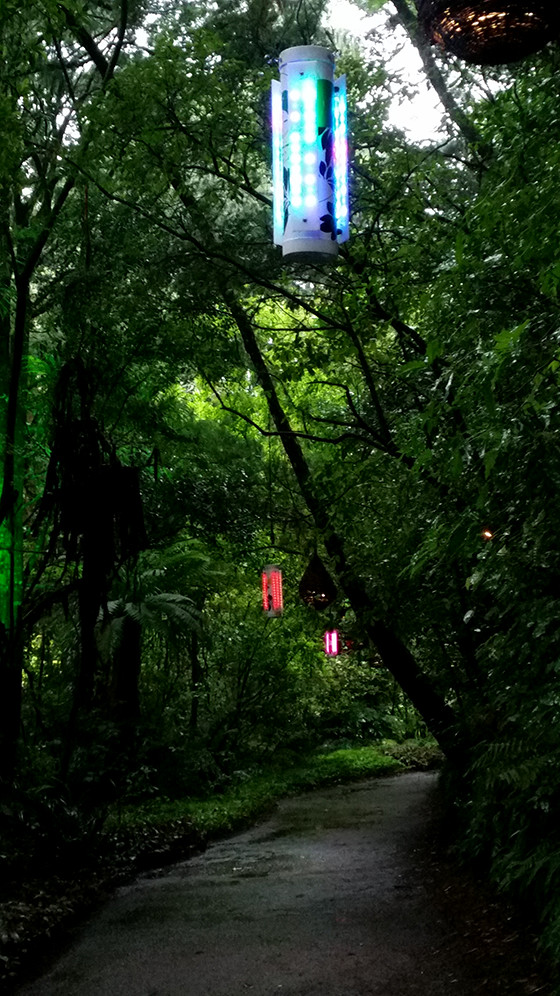 Bird Song Light Walk was commissioned by the 2016/2017 Festival of Lights in Nga Motu New Plymouth Aotearoa New Zealand. This is one of Aotearoa's oldest light festivals. Six motion activated units are suspended in the trees above. Once activated, the units play their assigned bird song and algorithmically programmed LEDs display the bird call.