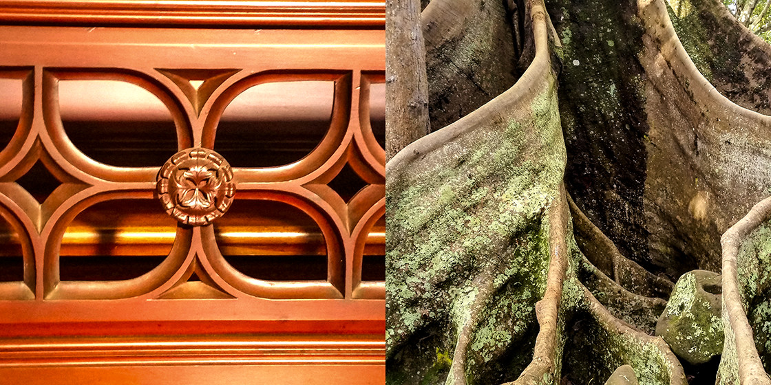 On the left is a detail of the pews, and on the right one of the fig root structure. There are straightforward similarities in angle between one and another.