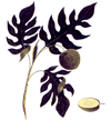 breadfruit tree form a graceful tapestry from which sexy, lime-green globes, weighing