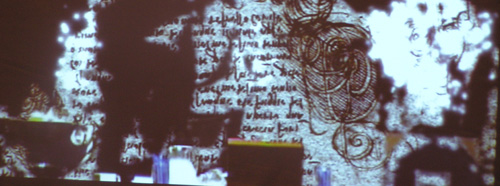 projected silhouette of each viewer, and clusters of particles rise to the top
